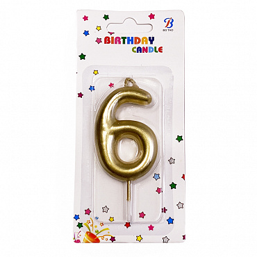 Свеча цифра Золотая 6